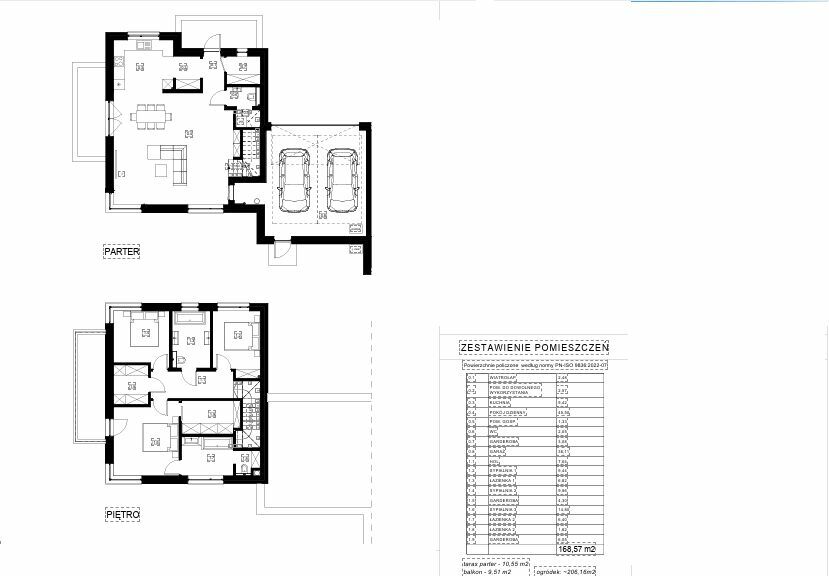 Dom o pow. 168,57 m2 na działce 206,16 m2. Zabudowa bliźniaczaRozkład pomieszczeń jest następujący:
